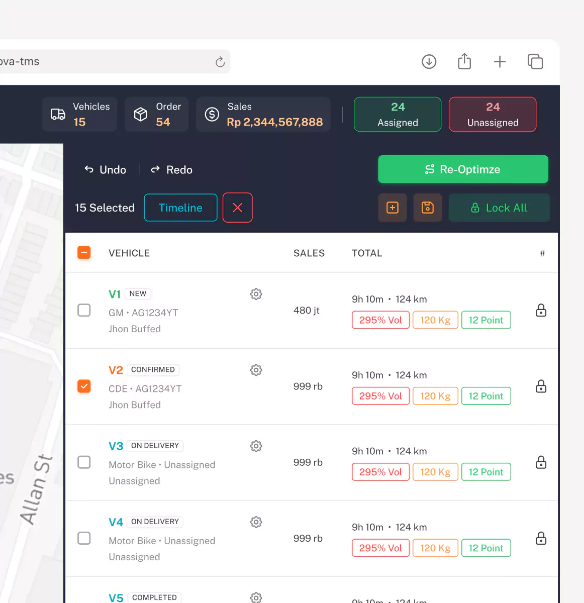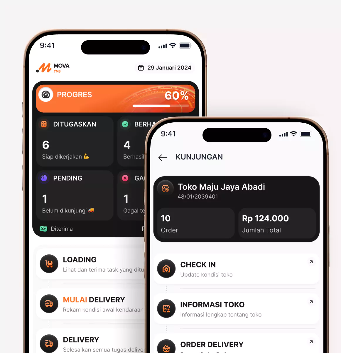 Dapatkan visibilitas penuh, kecepatan operasional, dan kontrol total dengan Mova TMS.